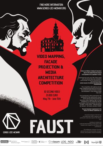 Bild 1: Festivalplakat © Tanja Schnurpfeil, Genius Loci Weimar 2025 ; Bild 2: Wettbewerbsplakat © Deniz Sel, Genius Loci Weimar 2025